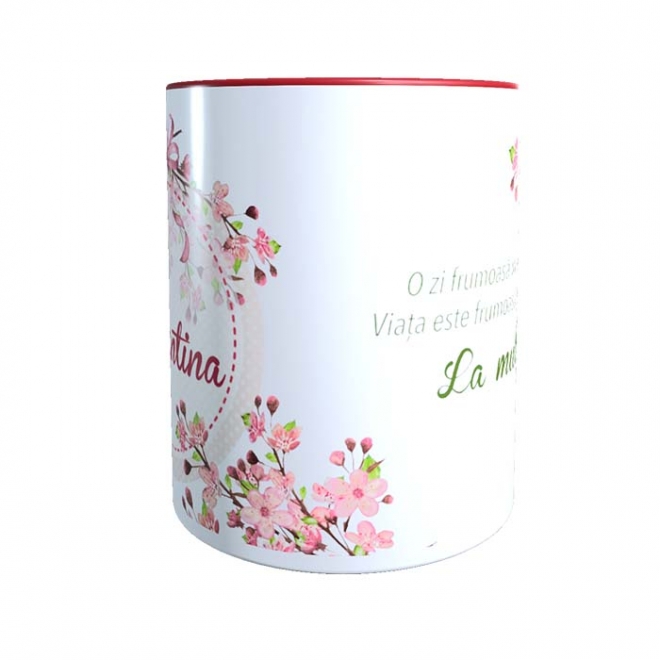 Design-ul cu elemente si cromatica feminina fac ca aceasta cana sa fie un cadou ideal chiar si de 8 Martie, Ziua femeii sau Florii.