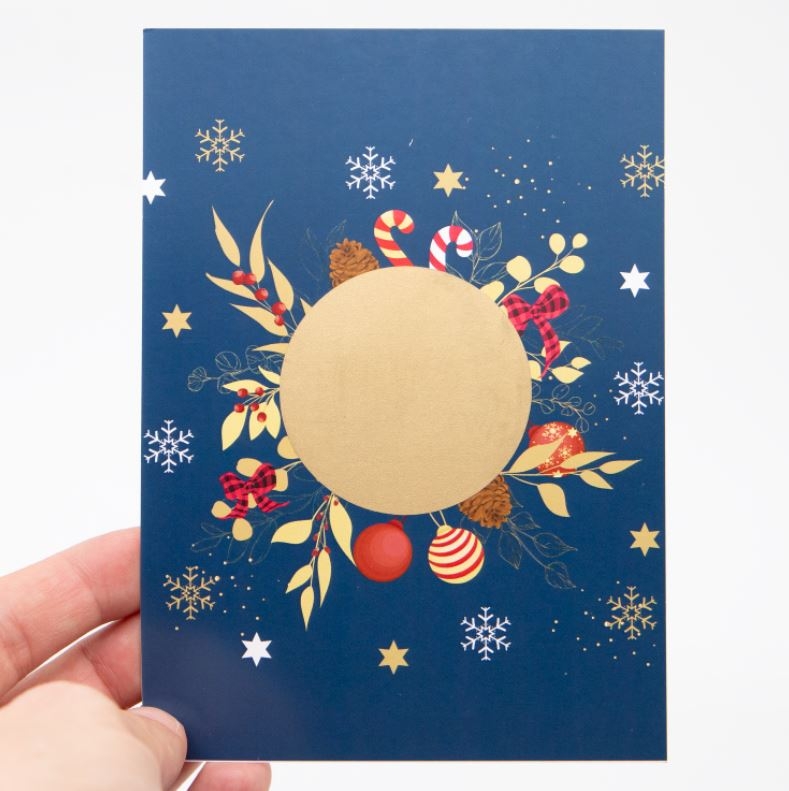 Mesajul poate fi personalizat in functie de preferinte si ocazie si este ascuns sub o bulina razuibila de 5cm. Daca destinatarul este un viitor tatic/bunic/matusa fii sigur ca genul acesta de cadou, poate fi o alegere interesanta pentru a da vestea cea mare, care va surprinde cu siguranta. Felicitarea este cu design tematic, tipic sarbatorilor de iarna si care va completa cu siguranta cadourile la care te-ai gandit pentru cei dragi! j