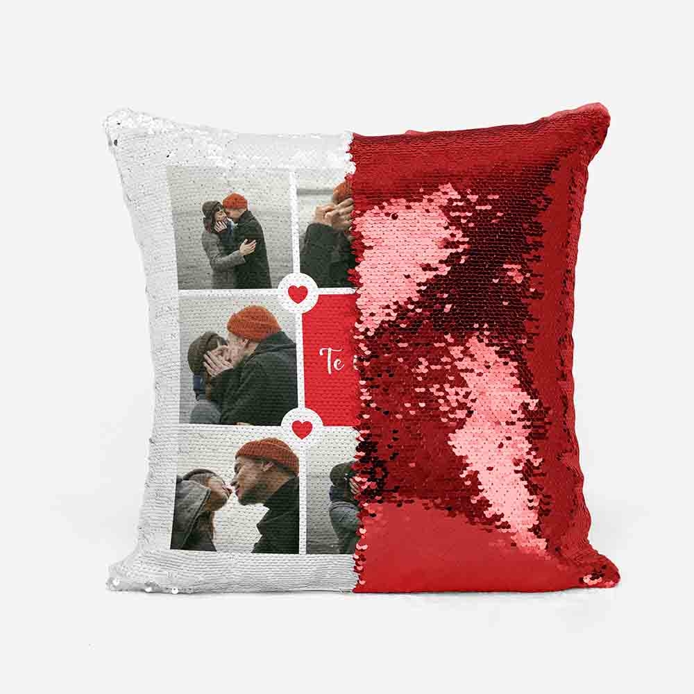 Perna cu paiete rosii este ultimul trend in materii de cadouri wow. Design-ul format dintr-un colaj cu 8 fotografii si text face din ea un cadou care poate fi oferit cu orice ocazie.